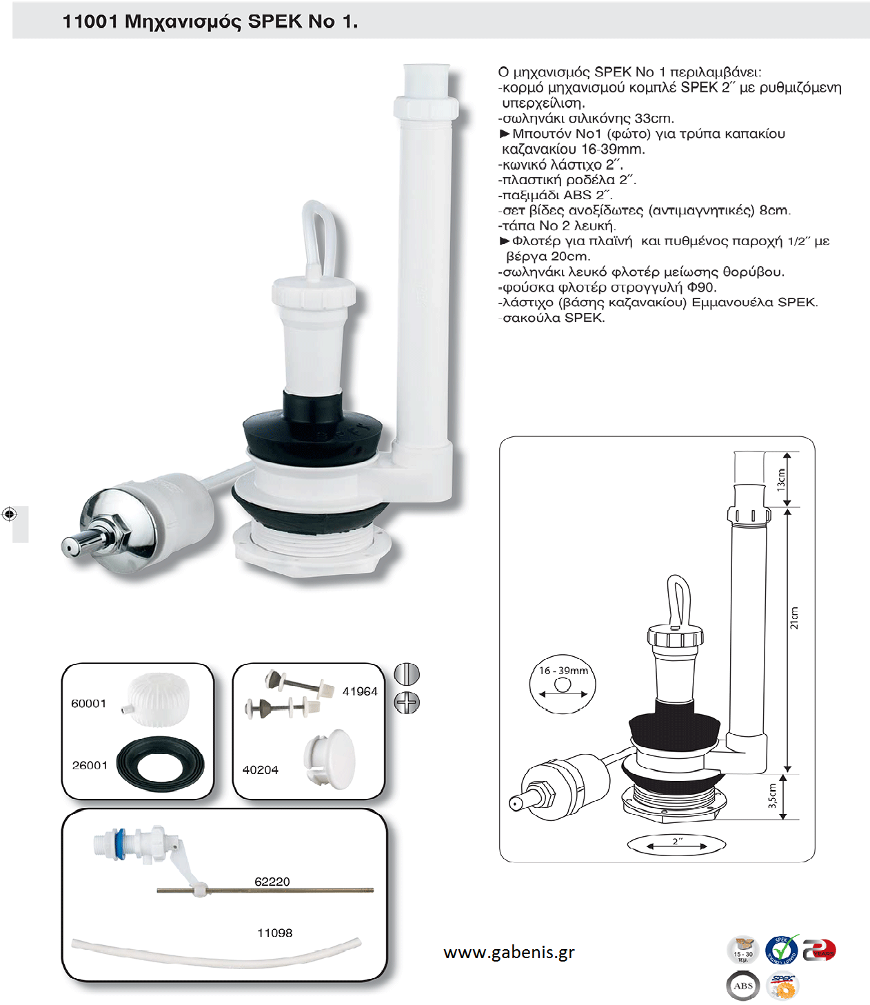 Χαρακτηριστικά - Μηχανισμός Αέρος για Καζανάκια τύπου Ideal