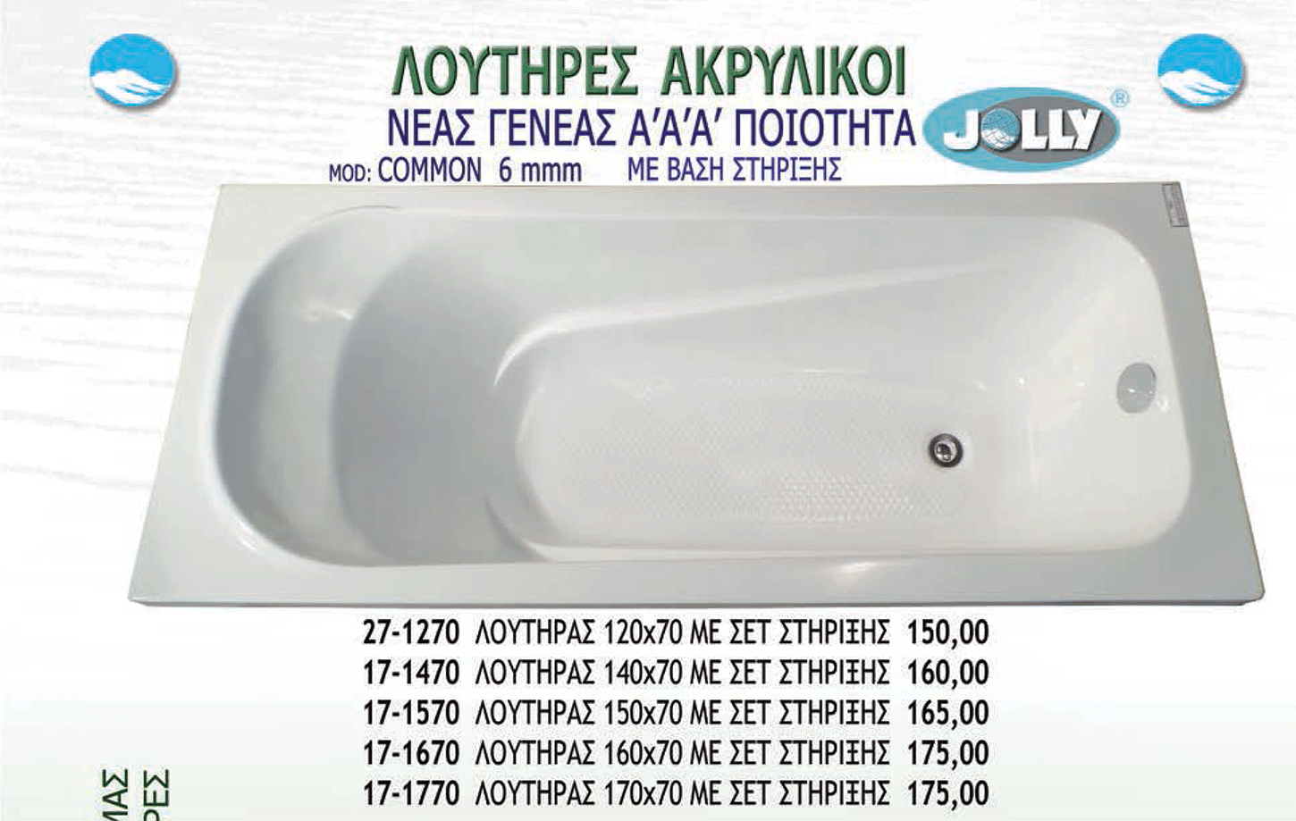 Gloria Jolly: Μπανιέρες Ακρυλικές Εκπτωση Καταλόγου 15%